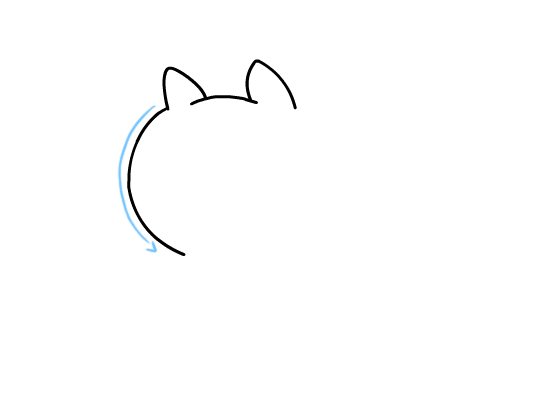 귀와 귀를 이어서 동그란 얼굴을 그려줍니다