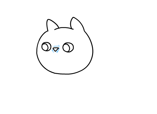 이제 눈과 눈 사이에 역삼각형으로 고양이의 코를 그려줍니다