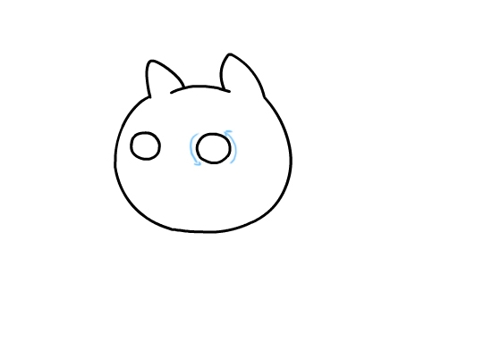 고양이의 눈을 동그라미 두 개로 그려줍니다