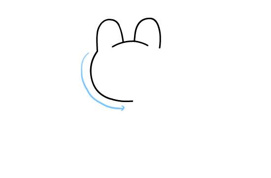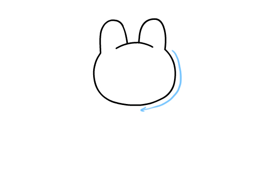 귀와 귀를 이어서 토끼의 얼굴을 그려줍니다